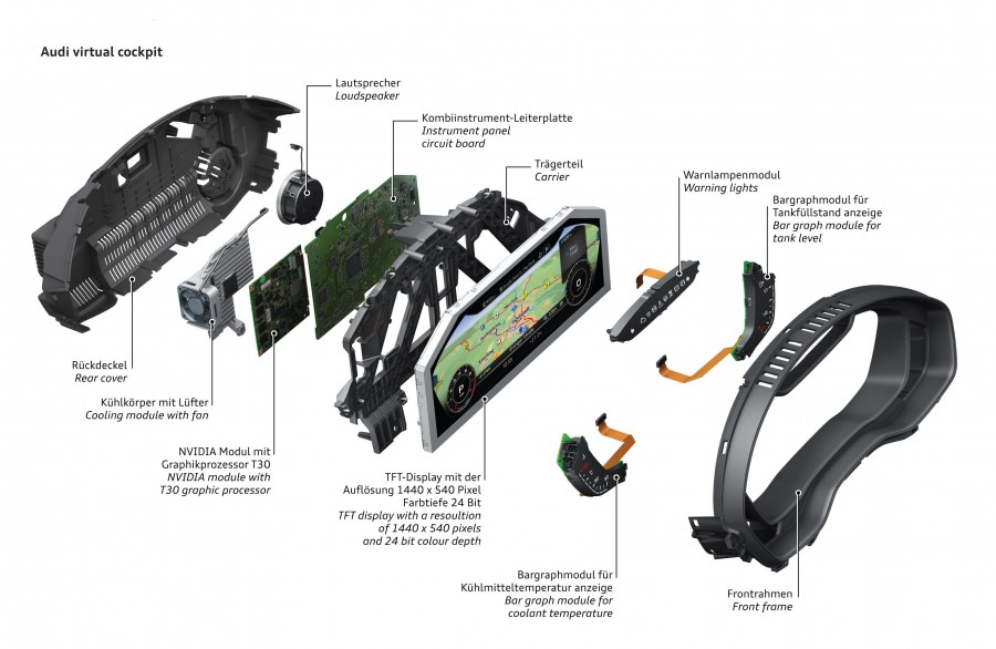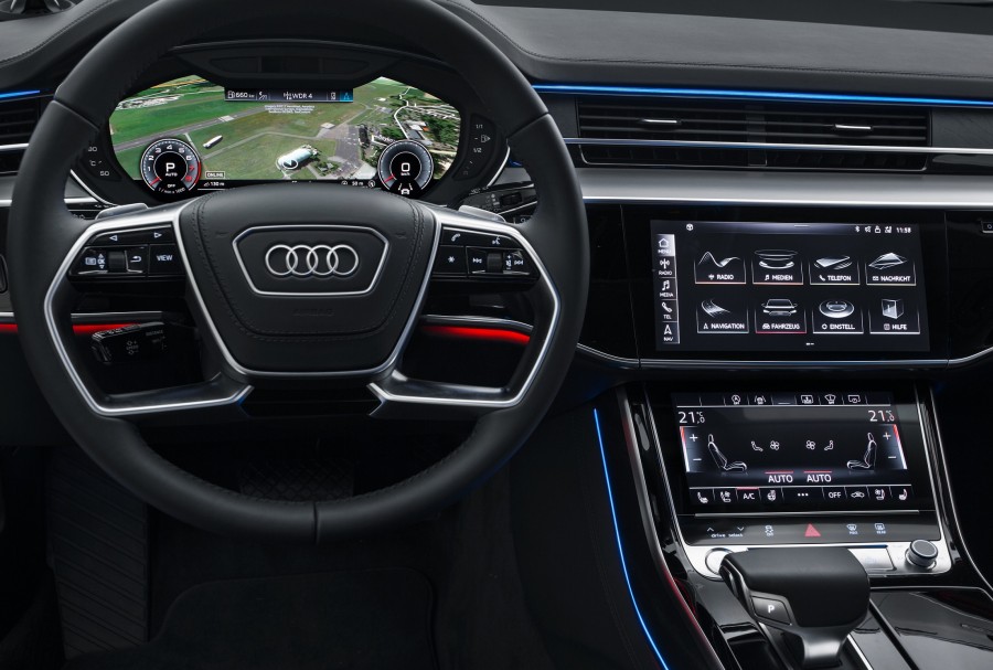 Το σύστημα Audi MMI εντυπωσιάζει με μια ποικιλία λειτουργιών ήχου, ακριβή πλοήγηση μέσω των Χαρτών Google, ενσωμάτωση Bluetooth, σύνδεση 4G LTE Audi Connect και πληθώρα εφαρμογών. Διαθέτει state-of-the-art φωνητικό έλεγχο, με διαισθητική και ασφαλή λειτουργία κατά την οδήγηση. Πολλά από τα χαρακτηριστικά του ελέγχονται με το τιμόνι πολλαπλών λειτουργιών, παράλληλα με τις προβολές στην ψηφιακή οθόνη/πίνακα οργάνων εμπρός από τον οδηγό. Σε μία πανδαισία χρωμάτων και υψηλής ανάλυσης, τα αναλογικά όργανα μετατρέπονται σε ψηφιακές απεικονίσεις ανάλογα με τις επιθυμίες και τις ανάγκες του χρήστη, με δυνατότητα ρύθμισης ακόμα και εν κινήσει. Διατίθεται επιλογή ανάμεσα στην παραδοσιακή ή την οθόνη ψυχαγωγίας, με τους χάρτες πλοήγησης ή τις τηλεφωνικές, ραδιοφωνικές και ηχητικές λίστες να κυριαρχούν στη δεύτερη περίπτωση, σε ένα μεγάλο παράθυρο μεταξύ ταχυμέτρου και στροφομέτρου. Το τελευταίο, καταλαμβάνει κυρίαρχη θέση στο κέντρο του ψηφιακού πίνακα στα μοντέλα S, με τo sport χαρακτήρα.