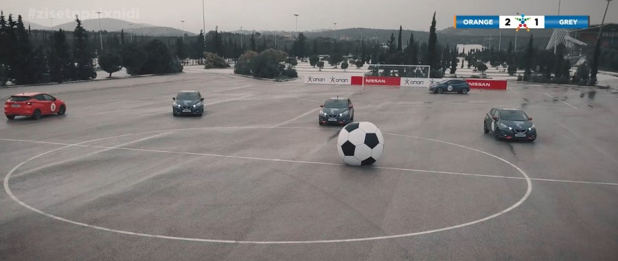 Κατά τη διάρκεια του «ματς», τα Nissan Micra προσφέρουν ένα συναρπαστικό θέαμα με πολλές ντρίμπλες, προσποιήσεις, αλλά και θεαματικούς ελιγμούς, μαζί με χειρόφρενα και σπιναρίσματα, βάζοντας πολλά γκολ! Οι δύο ομάδες («Πορτοκαλί» και οι «Γκρι») παίρνουν θέση στη σέντρα, ο διαιτητής σφυρίζει την έναρξη και όλοι ζουν το παιχνίδι, όπως δεν το έχουν ξαναζήσει: