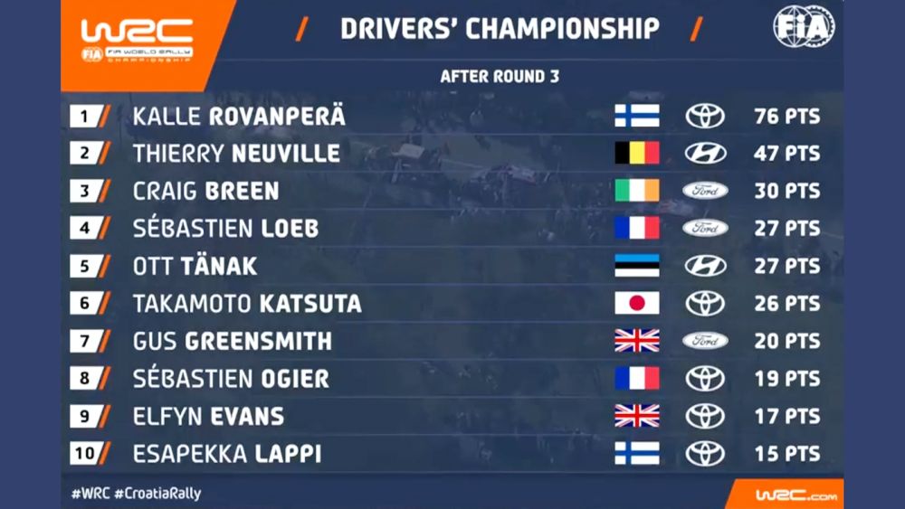 Όμως εκεί ο Rovanpera έδειξε πως διαθέτει κρύο αίμα, κάρφωσε το δεξί πόδι στο πάτωμα, πήρε την ειδική και κατέκτησε τη νίκη. Μάλιστα, με τη μέγιστη βαθμολογική συγκομιδή, άνοιξε και τη διαφορά του από τον Thierry Neuville, που συμπλήρωσε το βάθρο.