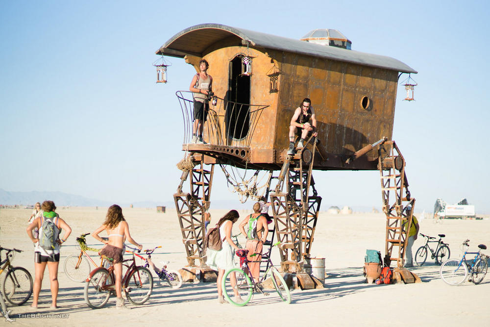 Οι «φεστιβαλιστές» πρέπει να φροντίζουν για τη στέγασή και τη σίτισή τους. Αυτά περιορίζονταν σε μια σκηνή και κονσέρβες και δημητριακά. Οι εκ Sillicon Valley ορμώμενοι, νέοι πιστοί του Burning Man, φέρνουν τα δικά τους ήθη και ανάγκες και επιδίδονται σε έναν αγώνα εντυπωσιασμού, μια μάχη για την ανάδειξη του πιο «ανοιχτοχέρη», δημιουργώντας τεράστιες κατασκευές που συναγωνίζονται Dali και Gaudi, πάνω και γύρω από τα πανάκριβα αυτοκινούμενα τροχόσπιτά τους, κοινότητες αποκομμένες από το υπόλοιπο φεστιβάλ, με chef, υπηρέτες, αερομεταφορές, πληρωμένα μοντέλα, δορυφορικά δίκτυα και όλες τις ανέσεις που υποτίθεται «άφησαν» πίσω τους ξεκινώντας για εκεί.