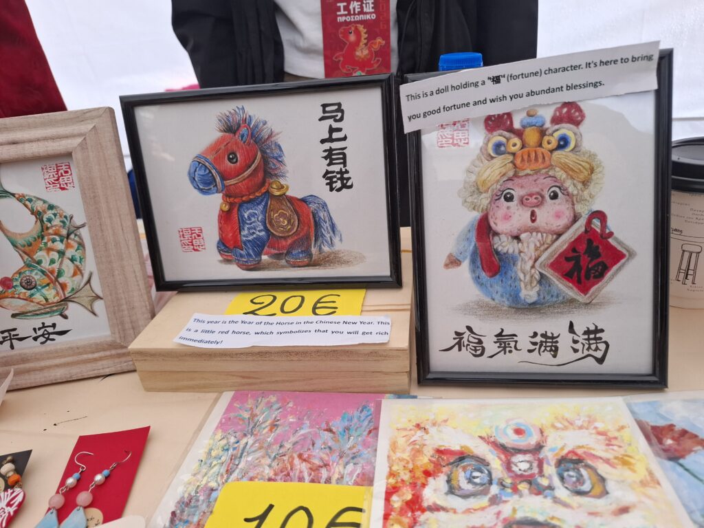 Περιηγήθηκα στα περίπτερα που είχαν στηθεί στην πλατεία. Στο ένα, τράβηξα χαρτάκι τύχης. Στο άλλο, δοκίμασα κινεζικό street food, dumplings και noodles. Χάζεψα DIY πραγματάκια, μικρά χειροποίητα διακοσμητικά, κόκκινους κόμπους για καλή τύχη και χαρτάκια με ευχές. Η καλή τύχη για τους Κινέζους είναι σοβαρό πράγμα.