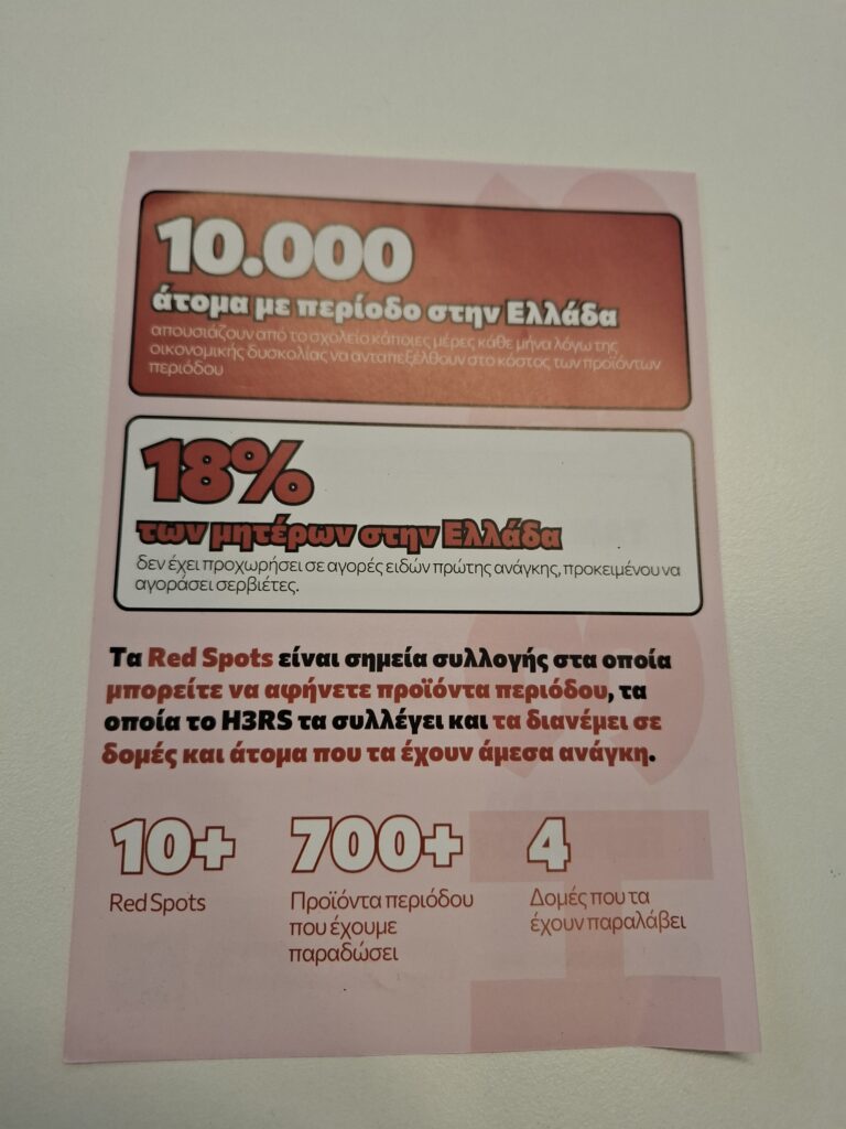 Στην Ελλάδα, το πρόβλημα δεν είναι θεωρητικό. Υπάρχουν έφηβες που χάνουν μέρες μαθημάτων. Υπάρχουν γυναίκες που αναγκάζονται να χρησιμοποιούν ακατάλληλα υλικά, δηλαδή σακούλες και πανιά, επειδή δεν έχουν άλλη επιλογή.