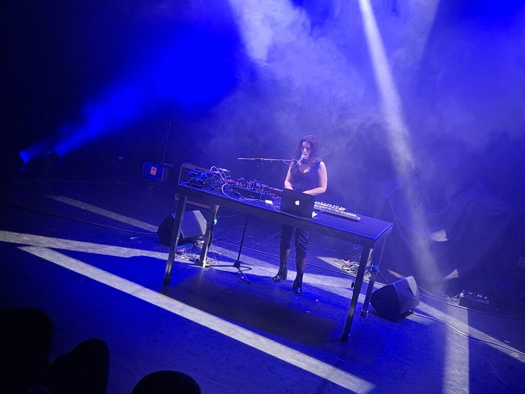 «Η μουσική μου είναι εικόνα», αναφέρει. «Αυτός είναι ο σκοπός της. Να δημιουργεί εικόνες μέσα στο μυαλό σου. Είναι κάπως καταστασιακή». Και πράγματι, στο live της στη Στέγη, δεν ένιωθες ότι ακούς απλώς κομμάτια. Ένιωθες ότι περνάς μέσα από σκηνές. Φώτα χαμηλά, παλμοί που ανεβαίνουν, φωνή που σε τραβάει από το χέρι και σε πηγαίνει αλλού.