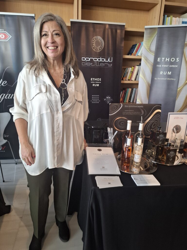 Στο περίπτερο του αποστακτηρίου Δοροδούλη από τη Θεσσαλονίκη, η Μαρία Δοροδούλη μου μιλά για ένα εγχείρημα που ακούγεται σχεδόν πεισματάρικο: επτά χρόνια πειραμάτων, σε συνεργασία με το Χημείο, για να δημιουργήσουν το πρώτο ελληνικό ρούμι. Οι διαδικασίες έχουν ολοκληρωθεί και οι πρώτες 1.300 φιάλες είναι έτοιμες. Η πρώτη παραγωγή ελληνικού ρούμι είναι γεγονός. Δεν πρόκειται για κάτι βαρύ ή εξωτικό με την κλασική έννοια, αλλά για ένα ποτό με μεσογειακό χαρακτήρα, πιο κρυστάλλινο, πιο ισορροπημένο και κυρίως, πιο γαστρονομικό. Ένα απόσταγμα που ξέρει από πού έρχεται και πού απευθύνεται.