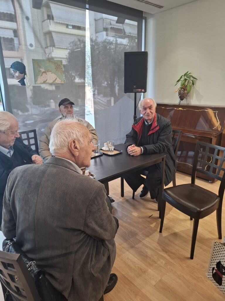 Παραδίπλα, δύο κύριοι με φωνάζουν και αλλάζω τραπέζι. Πάω από τη μια παρέα στην άλλη, σαν speed dating με την τρίτη ηλικία.