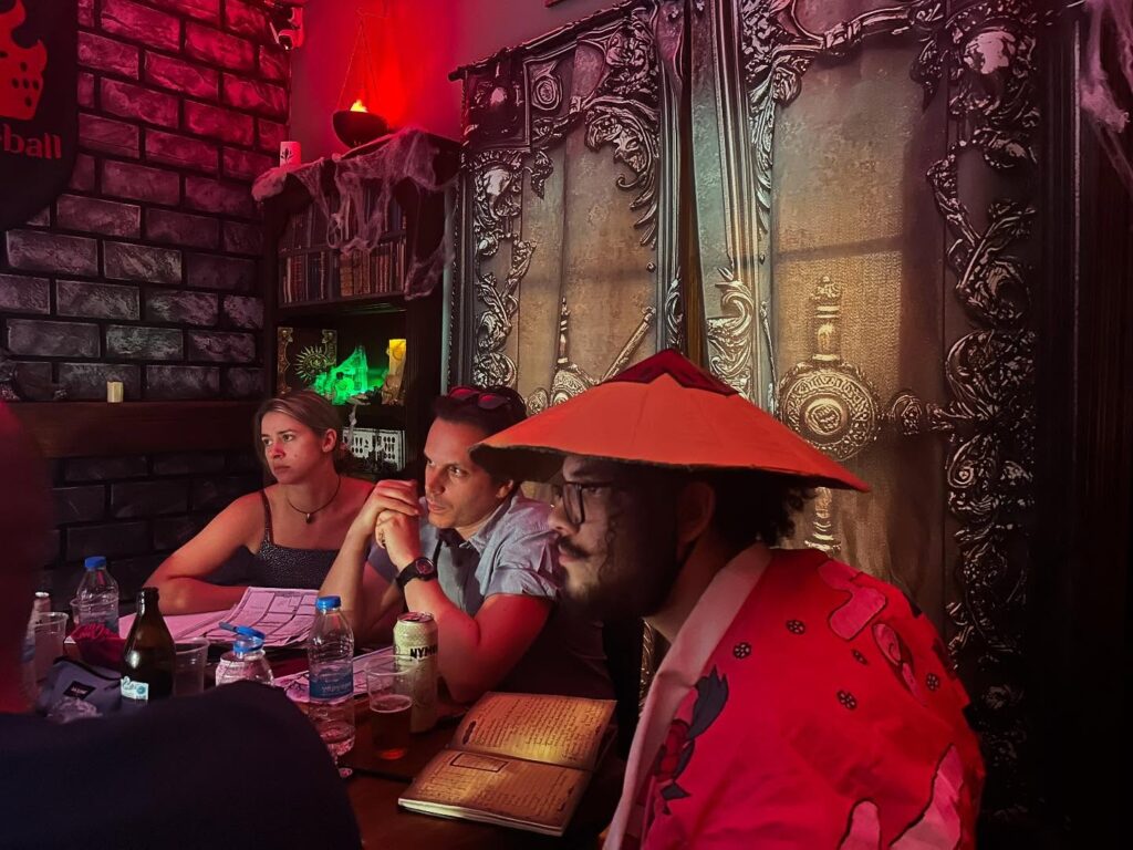 Το κάθε δωμάτιο έχει μυρωδιές, ήχους, φωτισμούς, αντικείμενα, όχι απλώς για ατμόσφαιρα. Γιατί δεν είσαι απλώς θεατής εκεί μέσα. Εκεί γίνεσαι χαρακτήρας και κομμάτι της ιστορίας. «Ποιας ιστορίας;», ρωτάω τον Ηλία. «Όποιας δημιουργηθεί» μου απαντά. Κάπως έτσι άρχισα να καταλαβαίνω ότι εδώ δεν μιλάμε μόνο για παιχνίδι. Μιλάμε σχεδόν για ένα αυτοσχεδιαστικό θέατρο, για performance, μιλάμε για ένα παράλληλο σύμπαν που φτιάχνεις μαζί με άλλους και έχει πλοκή, ρόλους, σκηνικά, κοστούμια και props.
