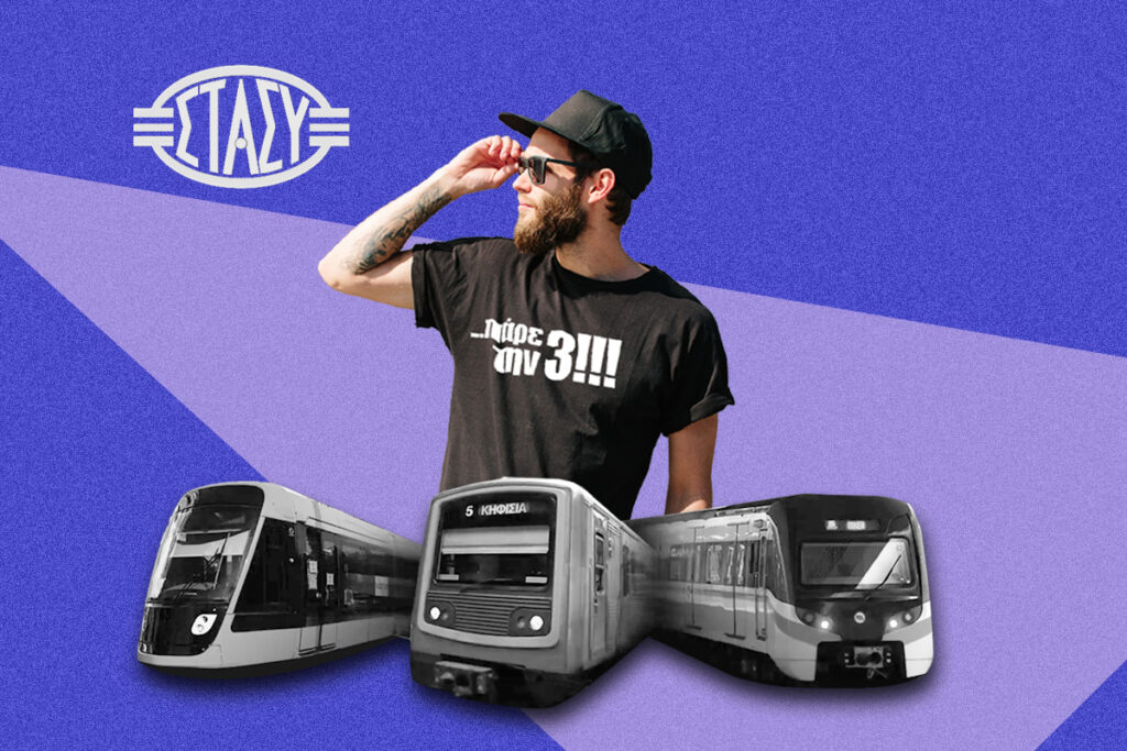 Αρχικά θα ήταν παράβλεψή μας να μην κάνουμε το αντίστοιχο λογοπαίγνιο για την Γραμμή 3 (μπλε)… Όπως λέμε «πάρε τα τρία». Τυπώνεται σε μπρελόκ, μπλουζάκια, κούπες, και φυσικά στην προσωποποιημένη κάρτα επιβίβασής σας.