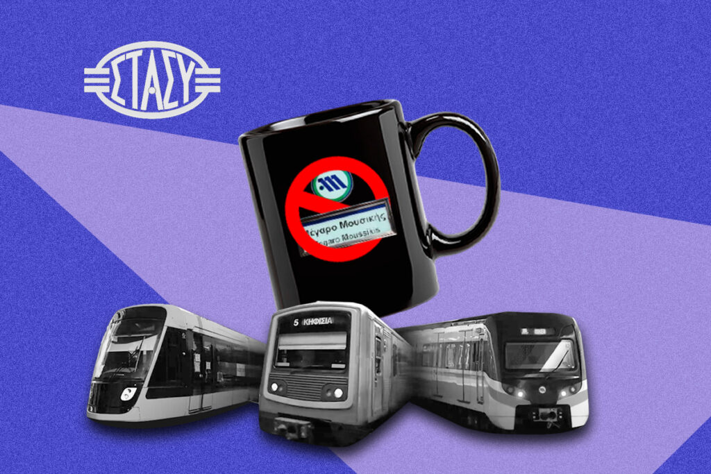 Δεν χρειάζεται ιδιαίτερη διευκρίνηση, η στάμπα μιλά για την στάση «Μέγαρο Μουσικής». Πρόκειται για αρνητικό μάρκετινγκ από την Κόκκινη Γραμμή (2) που θέλει να πάρει κίνηση από την Μπλε. Η φράση τυπώνεται στο πίσω μέρος της κούπας ή μπλούζας ενώ μπροστά εμφανίζεται το logo της στάσης. Ακόμα καλύτερα αν την κρατάει / φοράει ο παίδαρος.