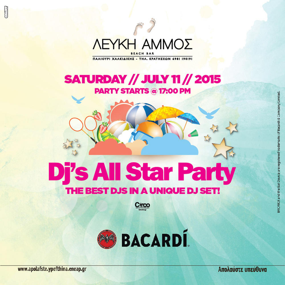 Σάββατο 11 Ιουλίου, Λευκή Άμμος, Χαλκιδική. Dj`s All Star Party. Θα χορέψεις, θα πιεις, θα ξεσκάσεις, θα ξεχάσεις. Σκέφτεσαι τίποτα καλύτερο;
