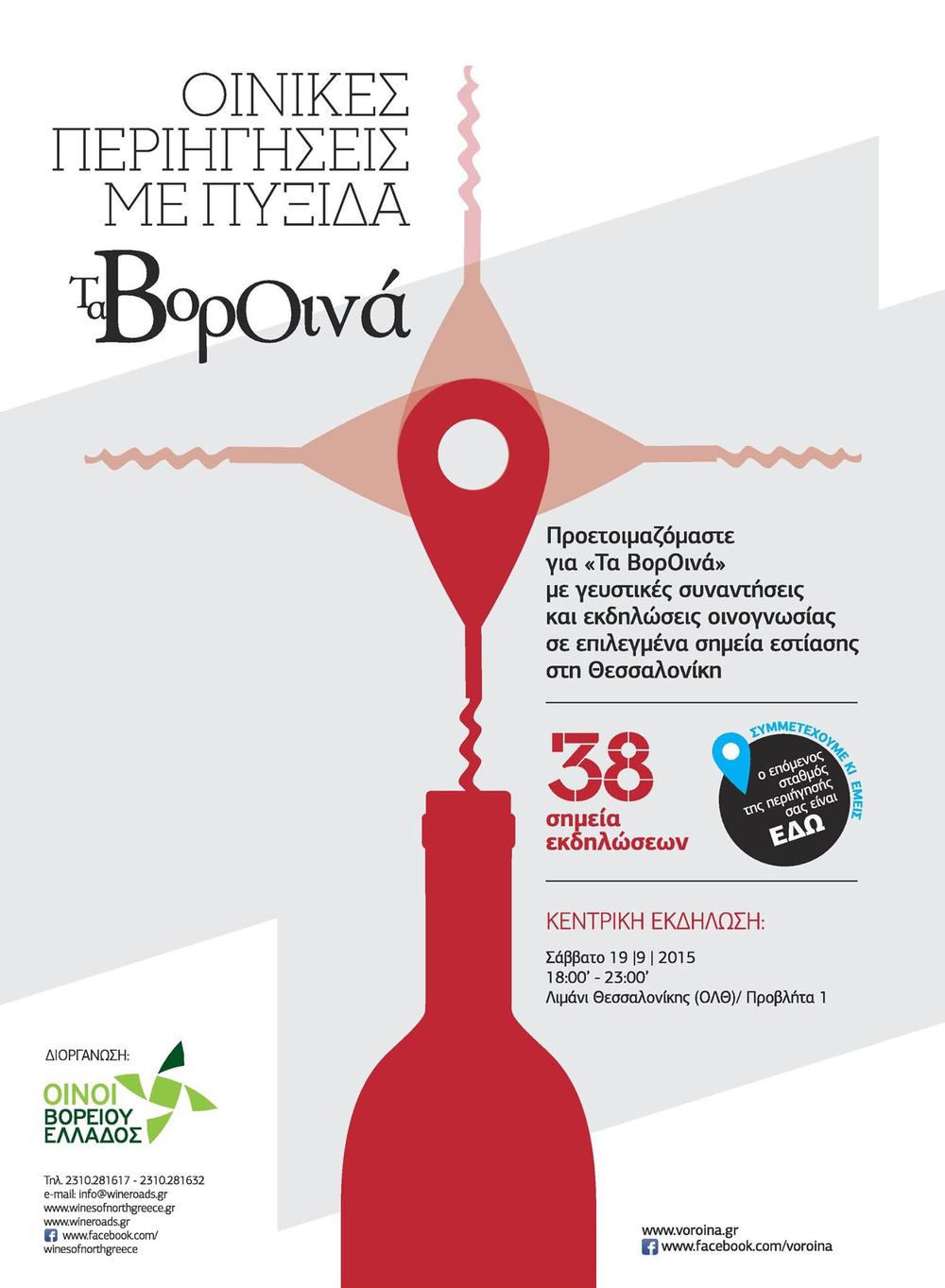 Τα ΒορΟινά, είναι μια ιδιαίτερα δημοφιλής οινική εκδήλωση, που έγινε θεσμός τα τελευταία χρόνια στην πόλη. Φέτος θα πραγματοποιηθεί το Σάββατο 19 Σεπτεμβρίου, από τις 06:00 το απόγευμα ως τις 11:00 το βράδυ,στην Προβλήτα 1,στο Λιμάνι Θεσσαλονίκης (ΟΛΘ).