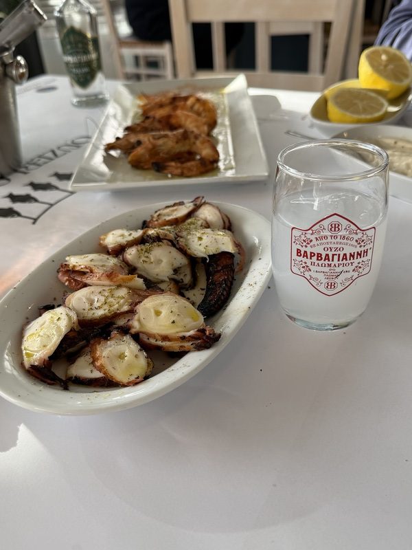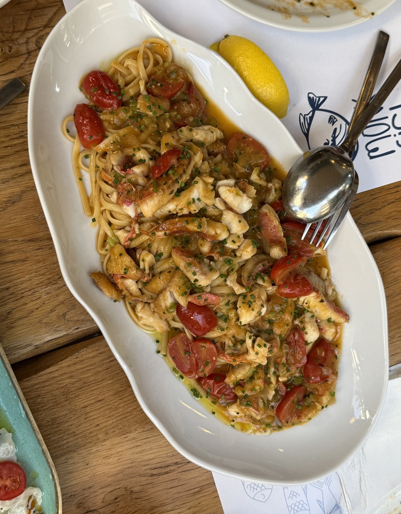 Στο γνήσιο και αυθεντικό αυτό εστιατόριο πήραμε βέβαια καβούρια, που δεν μπορω να πω ότι με τρέλαναν και ας ήταν στην πιο απλή μορφή τους. Λάτρεψα, ωστόσο, τον κρασομεζέ με τον γαύρο και τον πελτέ που είχε από πάνω, τέλειο υλικό για ψωμί! Βέβαια, οι βούτες έγιναν και στο σαγανάκι γαρίδας. Ψωμί να έχει, καλή καρδιά και όχι σκέψεις στα κιλά, και το απολαμβάνεις!