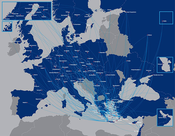 Συγκεκριμένα, το τρίμηνο Ιουλίου – Σεπτεμβρίου 2015, η εταιρία μετέφερε στο δίκτυο εξωτερικού 2.358.122 επιβάτες, σημειώνοντας αύξηση 29% έναντι της αντίστοιχης περιόδου του 2014. Η αύξηση αυτή αφορούσε και σε άλλες περιοχές εκτός φυσικά της Αθήνας, που είχε φέτος συνολικά θετική πορεία με κύρια συνεισφορά νέων προορισμών από την εταιρεία. Η θετική τάση συνεχίστηκε και το μήνα Σεπτέμβριο, όπου η κίνηση εξωτερικού παρουσίασε αύξηση + 28% με 709 χιλ. επιβάτες.