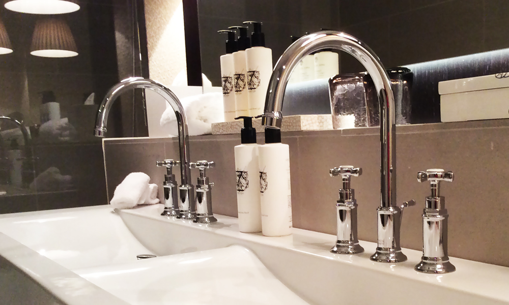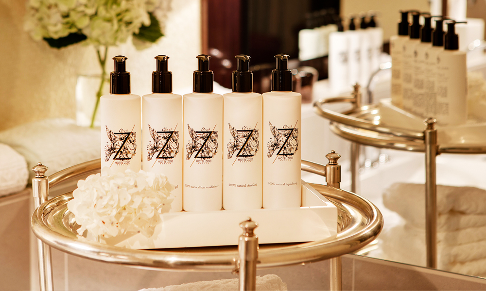 Μόλις μπαίνω στο δωμάτιο, τρέχω να λύσω τα all star μου και ξεκινάω μια μικρή εξερεύνηση. Πάω στο μπάνιο, στέκομαι μπροστά στο μεγάλο καθρέφτη και επεξεργάζομαι όλα τα μοναδικά προϊόντα με την υπογραφή και το λογότυπο του `Hotel Zoo – Berlin` (μπορείς να αγοράσεις online εδώ). Παράλληλα νιώθω τα πέλματα μου αρκετά ζεστά πάνω στο ιριδίζον πλακάκι, μάλλον θα είμαι αρκετά κουρασμένη σκέφτομαι…ξαφνικά όμως εντοπίζω τον διακόπτη για την ρύθμιση της θερμοκρασίας του πατώματος!