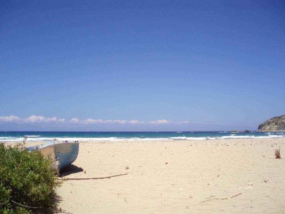Μια τεράστια παραλία με ξανθή άμμο απλωνόταν μπροστά μας, μια θάλασσα με καταγάλανα νερά, μες στην απόλυτη ερημιά, με μερικούς θάμνους κι αρμυρίκια διάσπαρτα στο πάνω μέρος της παραλίας. Κανένα σημείο ζωής ως τα βάθη του ορίζοντα. - Από τη Μελίνα Βατινέλ