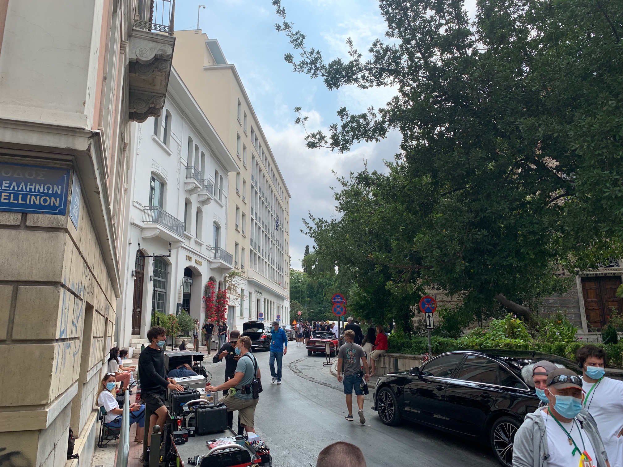 Η πλατεία μπροστά από την Βαρβάκειο Αγορά ήταν αποκλεισμένη για τους περαστικούς τον περασμένο Σεπτέμβριο αλλά όχι για τους συνήθεις λόγους. Μεγάλα μεταλλικά προστατευτικά χωρίσματα προστάτευαν ένα πολύ μεγάλο αριθμό ανθρώπων – τεχνικών με κάμερες, φώτα, security εξασφάλιζαν ότι κανείς άσχετος ή περίεργος δεν θα πλησιάσει, λίγο πιο πέρα ήταν παρκαρισμένα δεκάδες μαύρα mini van.
