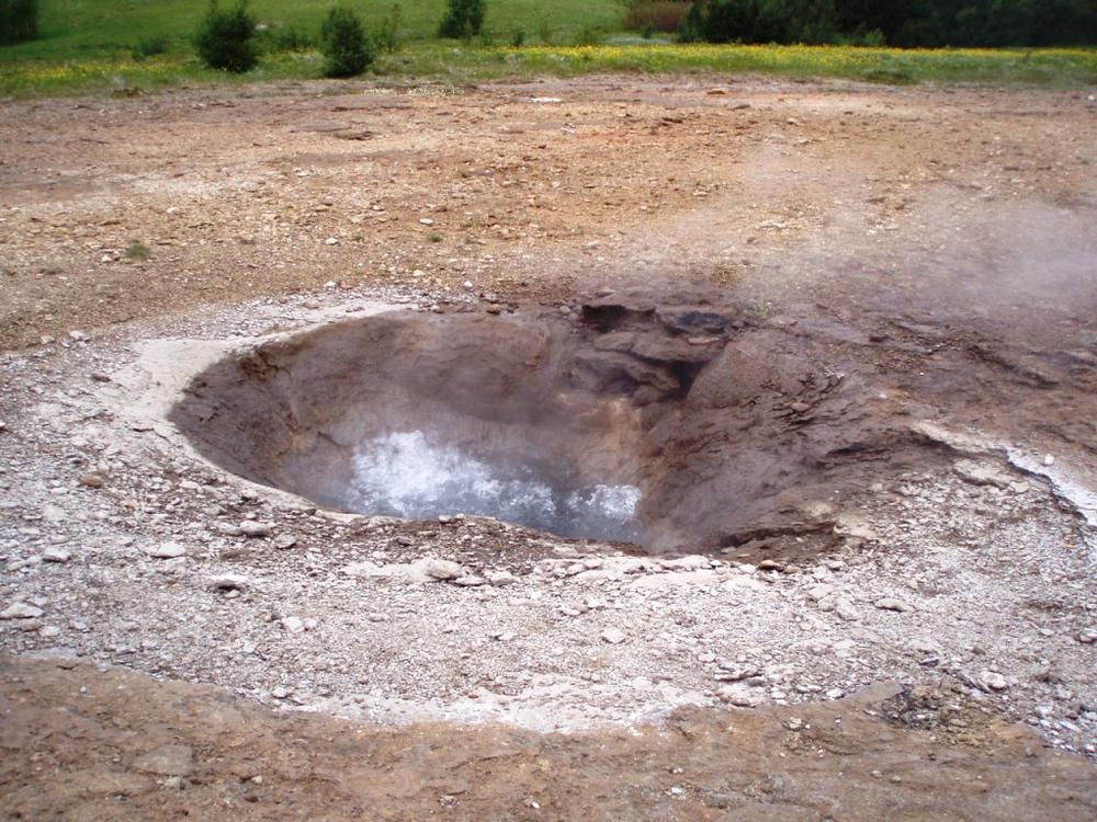 Πλησιάζοντας τον πρώτο θερμοπίδακα είδαμε μια τρύπα στο χώμα, με νερό που