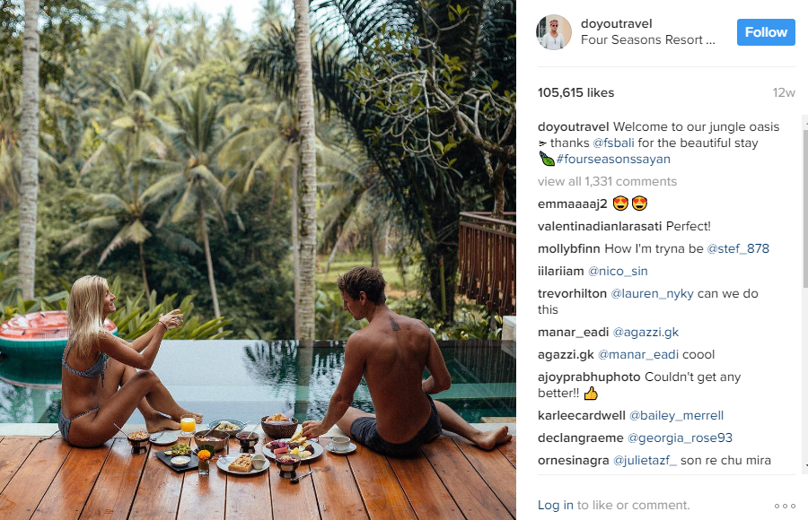 Γνωρίστηκαν στα Φίτζι πέρυσι ενώ ήταν και οι δύο travel bloggers με ισχυρό fan base. Ταξιδεύουν σε πανέμορφα μέρη και μένουν σε ειδυλλιακά ξενοδοχεία και θέρετρα, ενώ πληρώνονται για τις φωτογραφίες τους. Και από τότε που η ζωή τους «ένωσε» μέσα σε ένα χρόνο έχουν επισκεφθεί 45 χώρες.