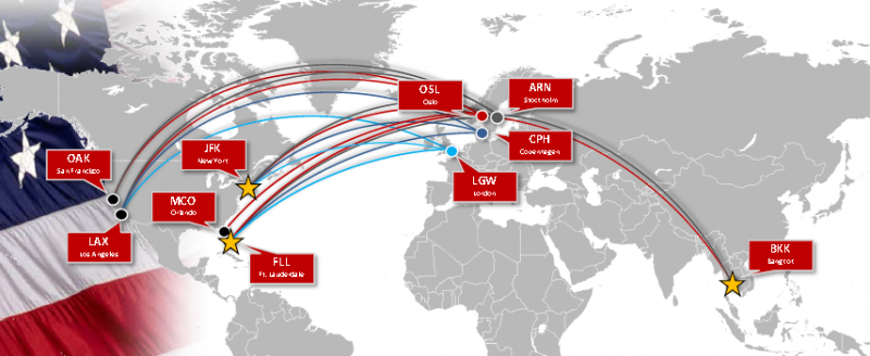 Ενώ άλλες εταιρίες όπως η γερμανική Lufthansa πετούν σε εκατοντάδες προορισμούς με ενδιάμεσες πτήσεις, η Norwegian σκοπεύει να κάνει πιο συνηθισμένες τις απευθείας πτήσεις σε μικρές πόλεις στην άλλη πλευρά του Ατλαντικού, κάτι που κρατά το κόστος σε χαμηλά επίπεδα.