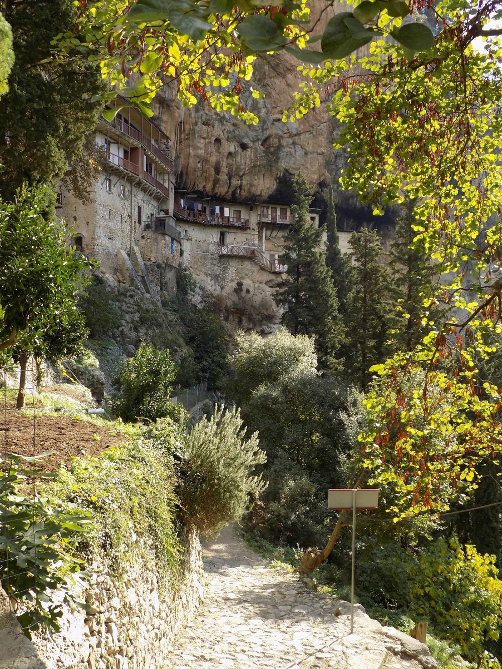 Το μονοπάτι σε οδηγεί στη Μονή του Τίμιου Προδρόμου, ένα ανδρικό μοναστήρι του 12ου αιώνα, που είναι χτισμένο κυριολεκτικά ένα βήμα από το γκρεμό. Ανάμεσα στα κούφια βράχια στέκεται ακόμα εκεί κάνοντας τον καθένα να ανατριχιάζει στη θέα του. Οι πηγές υποστηρίζουν πως αποτέλεσε ορμητήριο των ανδρών του Θεόδωρου Κολοκοτρώνη, ενώ μία ιστορία προδοσίας αμαυρώνει τη φήμη του.