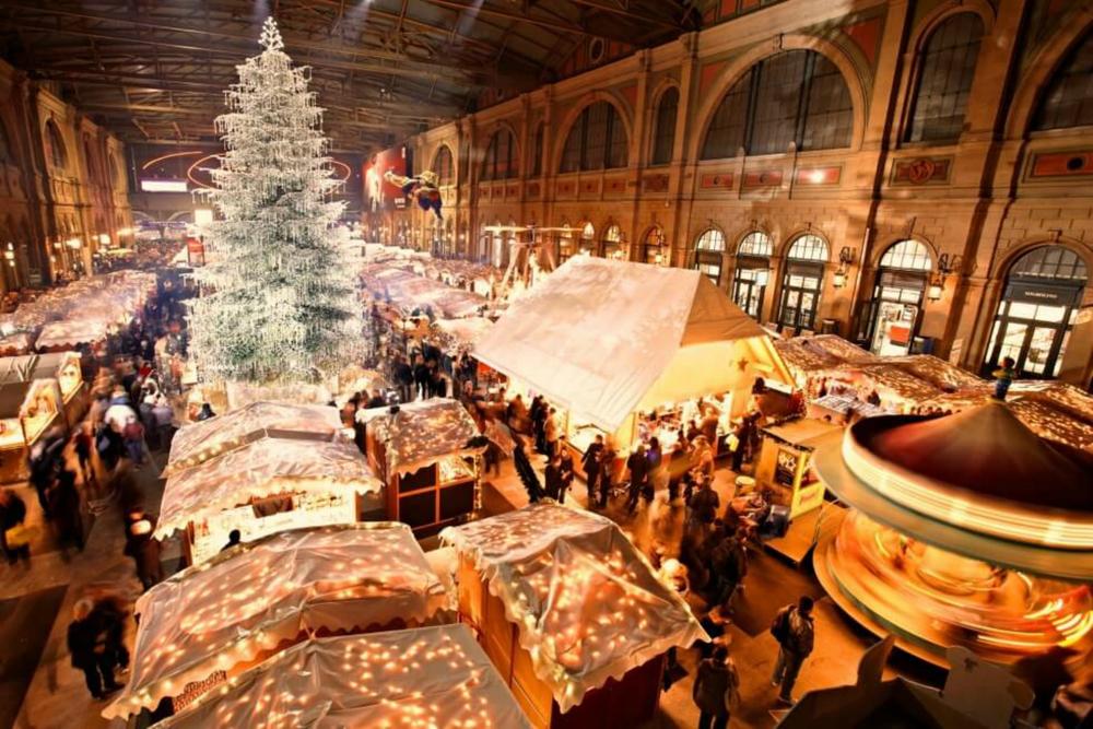 Ο κεντρικός σταθμός της Ζυρίχης είναι το σπίτι για τη μεγαλύτερη σκεπαστή αγορά Χριστουγέννων της Ευρώπης. Γύρω από το τεράστιο δέντρο που αγγίζει σχεδόν την οροφή, υπάρχουν πάνω από 160 πάγκοι με απαράμιλλη κομψότητα! Το χώρο στολίζουν ο γλυκός φωτισμός,ο ήχος από τις παιδικές χορωδίες και το άρωμα της κανέλας… Η ζεστή ατμόσφαιρα που προσφέρει είναι μια εμπειρία που πρέπει να βιώσεις…