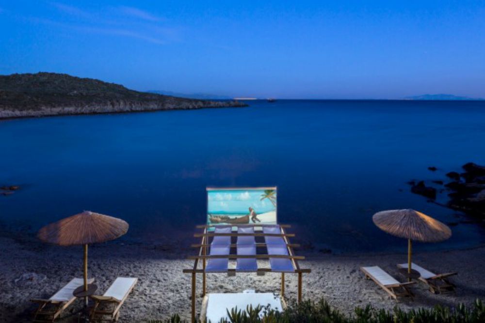 Το ξενοδοχείο Casa Del Mar στην Αλεόμανδρα Μυκόνου παρουσιάζει τον πρώτο παραθαλάσσιο, ιδιωτικό κινηματογράφο ξενοδοχείου στον κόσμο. Aπό την Αργυρώ Ντόκα
