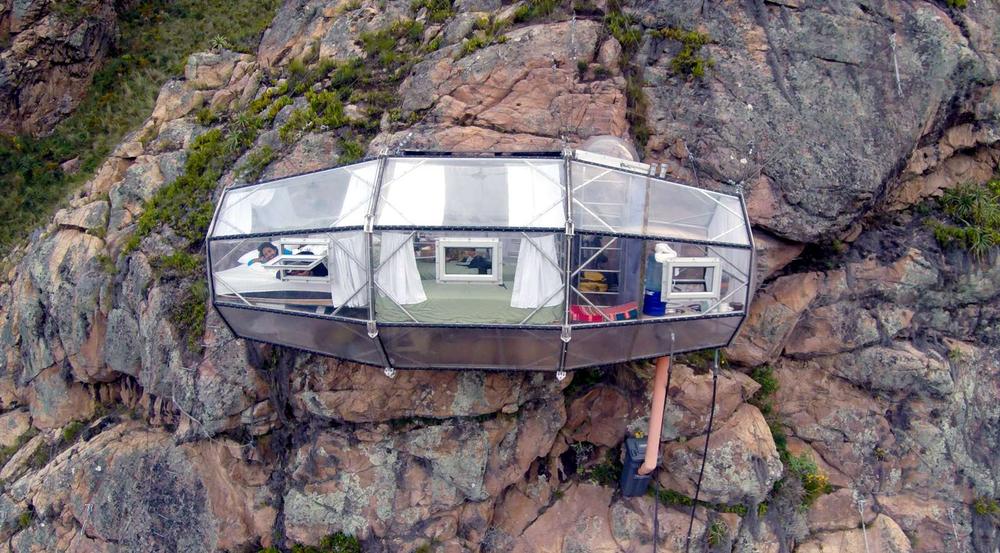 Στο Natura Vive Skylodge στην Sacred Valley του Περού, που κρέμεται παράλληλα με έναν βράχο 400 πόδια επάνω από την κοιλάδα θα νιώσετε ότι πετάτε στα σύννεφα. Ενδείκνυται μόνο για τολμηρούς επισκέπτες.