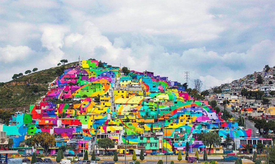 Η γειτονιά LasPalmitasείναι σκαρφαλωμένη σε ένα λόφο στην περιοχή Παλμίτας στην Πατσούκα στο Μεξικό. Περισσότερα από 200 χρωματιστά σπίτια δημιουργούν ένα ουράνιο τόξο.