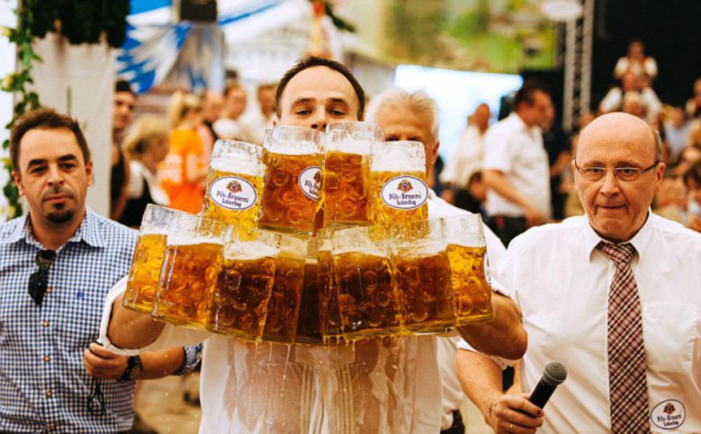 - Αν ακούσεις ξαφνικά μια κραυγή να λέει κάτι σαν “Vorsicht!” κάνε όσο πιο γρήγορα μπορείς στην άκρη. Είναι το σύνθημα των σερβιτόρων ότι περνούν και πρέπει να φύγεις από τη μέση – και, πίστεψέ μας, δε θες να βρεθείς στη μέση! Άσε που μπορεί να σπάνε και ρεκόρ! Το Σεπτέμβριο του 2014, ο Γερμανός σερβιτόρος Oliver Struempfl κατάφερε να μεταφέρει 27 γεμάτα γυάλινα ποτήρια μπύρας του 1 λίτρου για μια απόσταση 40 μέτρων χωρίς να χυθεί σταγόνα, θέτοντας έτσι νέο παγκόσμιο ρεκόρ.