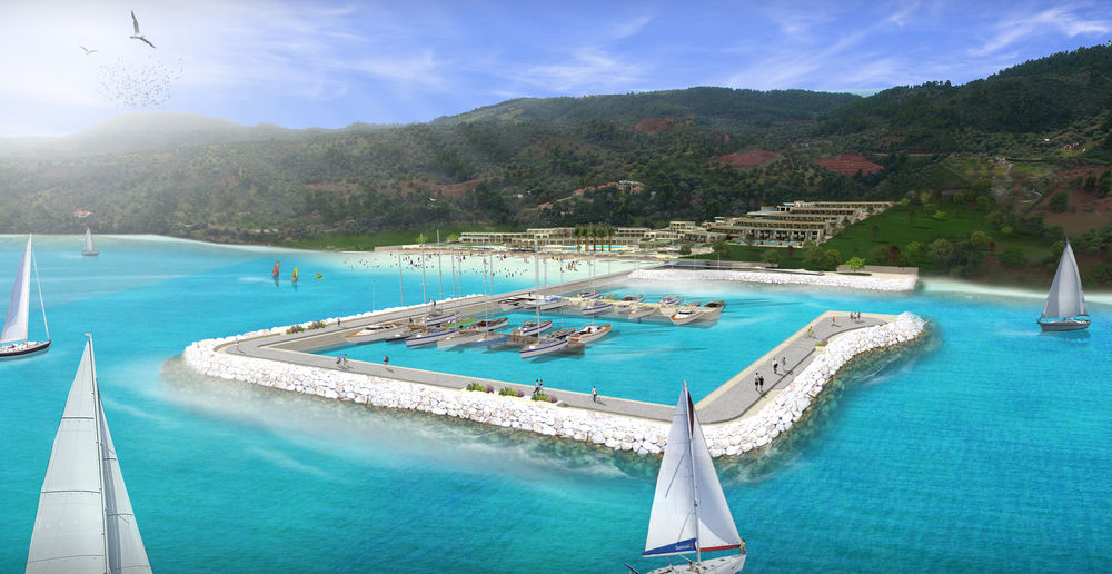 Αν και το ξενοδοχείο από μόνο του αποτελεί ένα υπερθέαμα, κεντρικό θέμα συζήτησης όλων αποτελεί η εντυπωσιακή μαρίνα του τουριστικού θέρετρου, που αποτελεί την πιο όμορφη στη Μεσόγειο αυτή τη στιγμή. Για το σχεδιασμό της μαρίνας συνεργάστηκαν με το Αριστοτέλειο Πανεπιστήμιο Θεσσαλονίκης. Πρόκειται για τη μεγαλύτερη προβλήτα στο είδος της στην Ελλάδα συνολικού μήκους 110 μέτρων, η οποία μπορεί να φιλοξενήσει 81 σκάφη έως 40m σε μήκος, ενώ θα παρέχει ασφάλεια όλο το 24ωρο. Στη μαρίνα επίσης θα μπορεί κανείς να απολαύσει πιάτα θαλασσινών ή να πιει κάτι στο cafe, που θα διαθέτει.