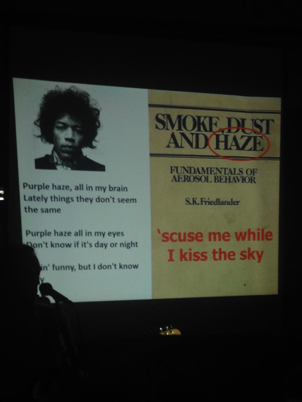 Ο κόσμος που το παρακολουθεί είναι πρώην και νυν φοιτητές αλλά και φίλοι του συγκροτήματος. Ο κος καθηγητής μιλάει για Dust, Smoke και Haze και ερμηνεύει BB King, Bo Didley, JJ Cale αλλά και Jimmy Hendrix. Ακούμε εντυπωσιασμένοι για τα επίπεδα μόλυνσης του αέρα και στο καπάκι τα σόλο του Ντουνούση στην κιθάρα. Ο συνδυασμός επιστήμης και μουσικής είναι εμπνευσμένος και απόλυτα πετυχημένος.