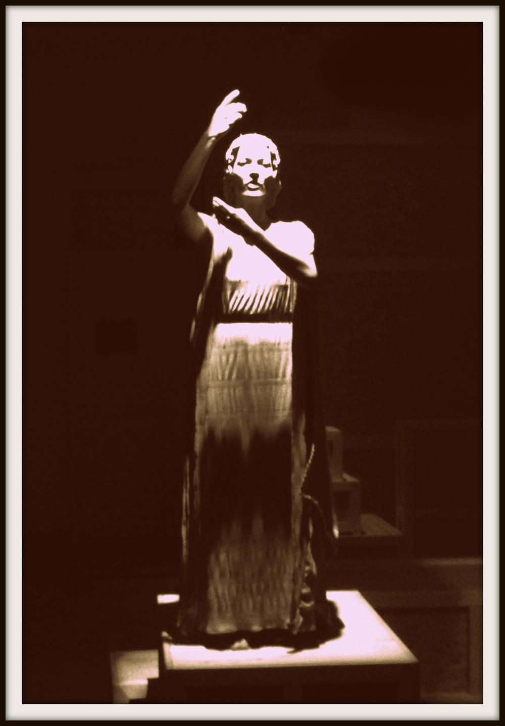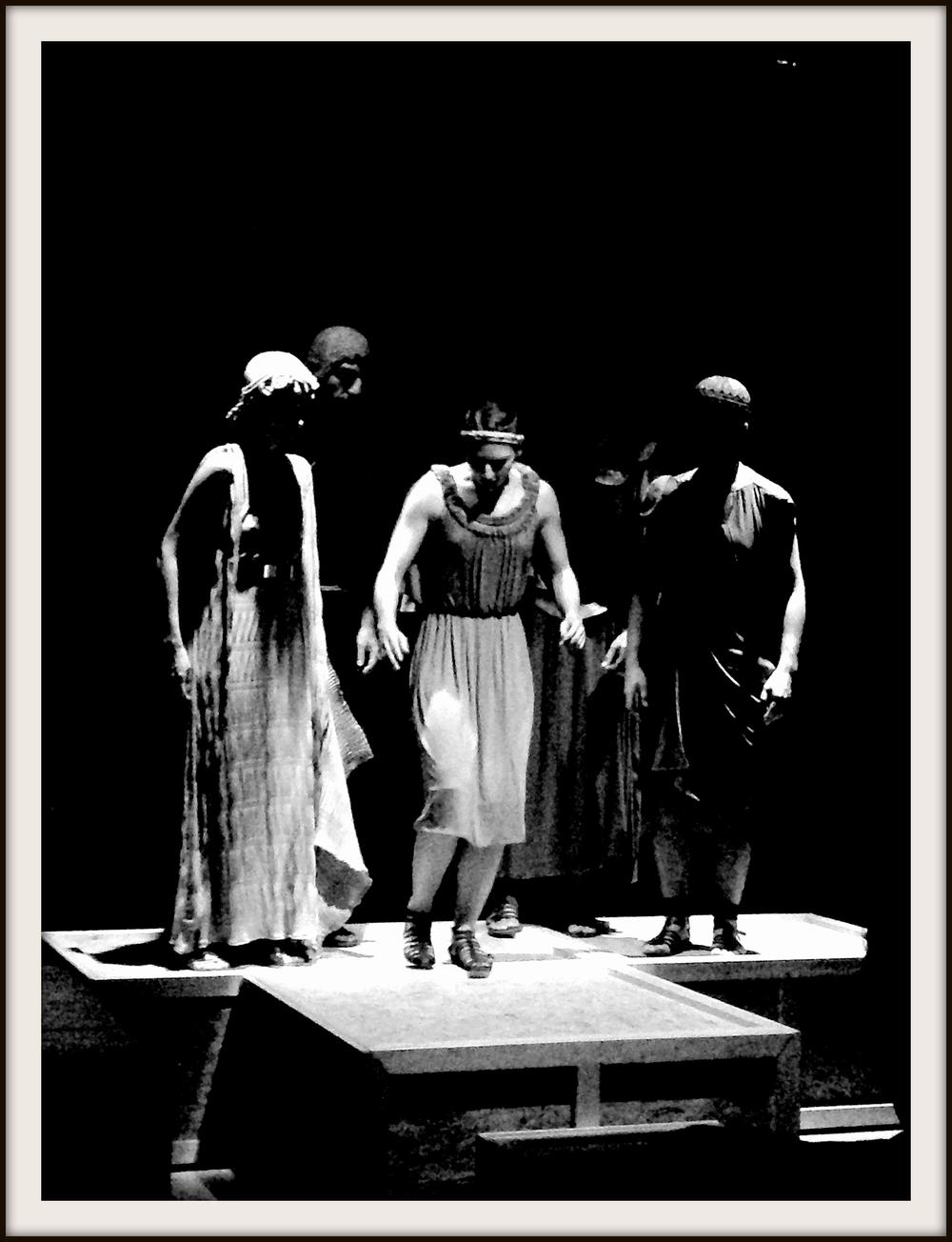 To me, the most dramatic moment in our performance is the chorus passage “Love undefeatable in battle” which is set to music by Thanasis Vlavianos and choreographed by Hermes Malkotsis. This is the dramatic climax of our performance.
