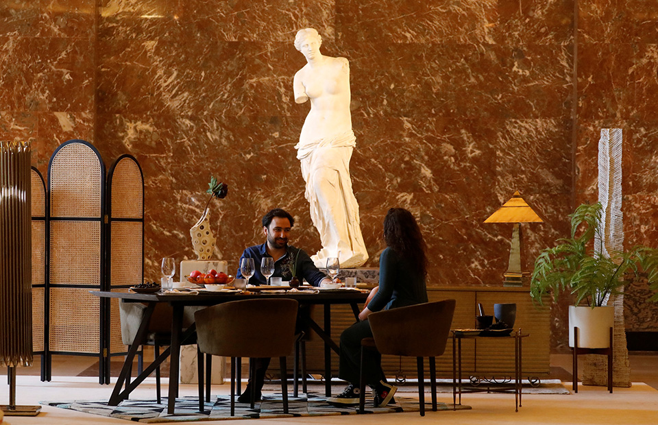 Στη συνέχεια, οι δύο επισκέπτες θα δειπνήσουν μπροστά από την «Αφροδίτη της Μήλου», με πιάτα που θα επιμεληθεί σεφ, ειδικά για αυτούς.